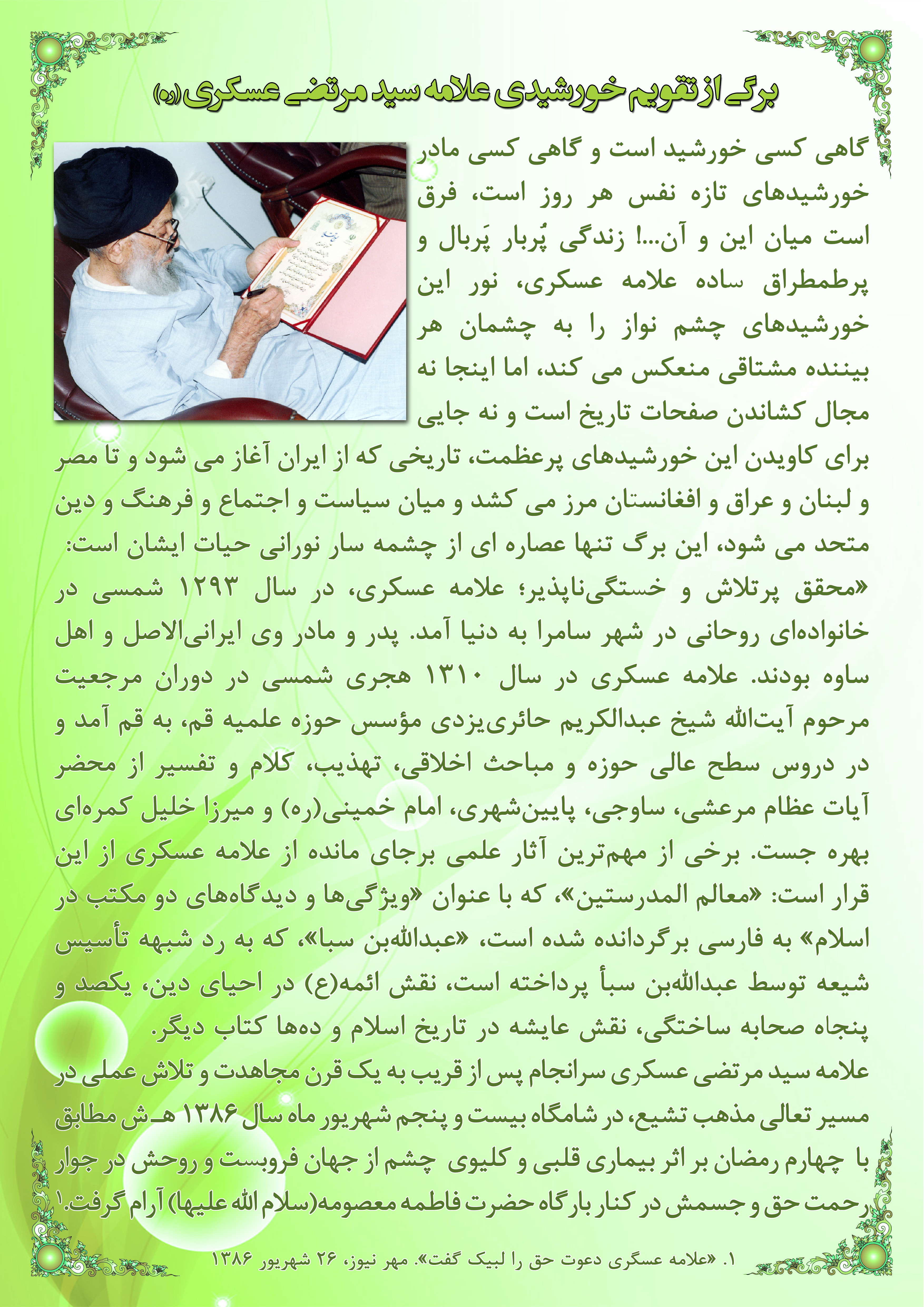 گوشه ای از فعالیت های علامّه عسکری (ره) :