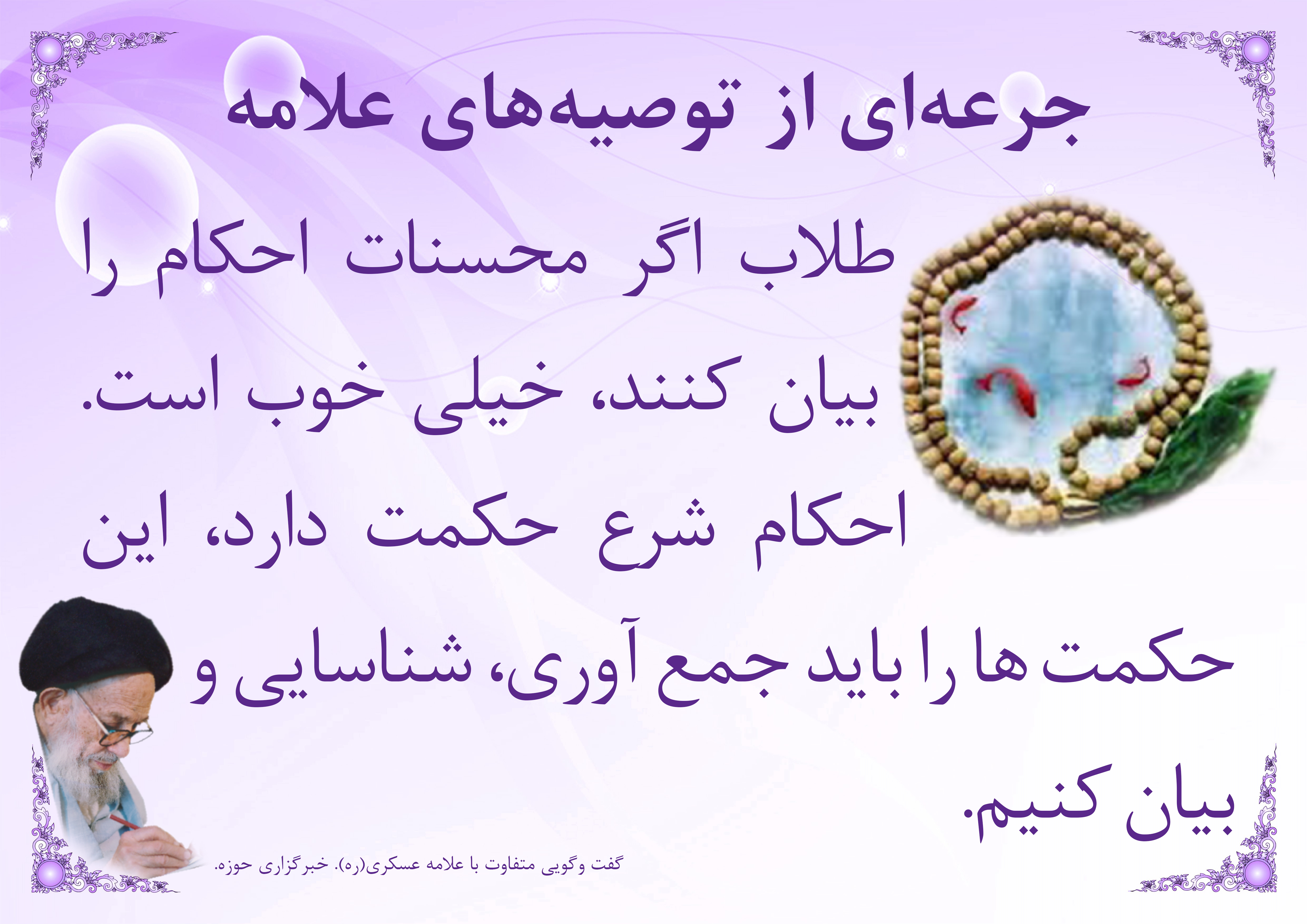 فرزند علامه عسگری : پدر تمام زمان خود را برای حل مشکلات اجتماعی ، فرهنگی و سیاسی مردم میگذراندند و میگفتند من از زمانی که وارد کارهای فرهنگی و سیاسی شدهام بر روی پیشانی خود نوشتم وقف اهل بیت (علیهم السلام) .